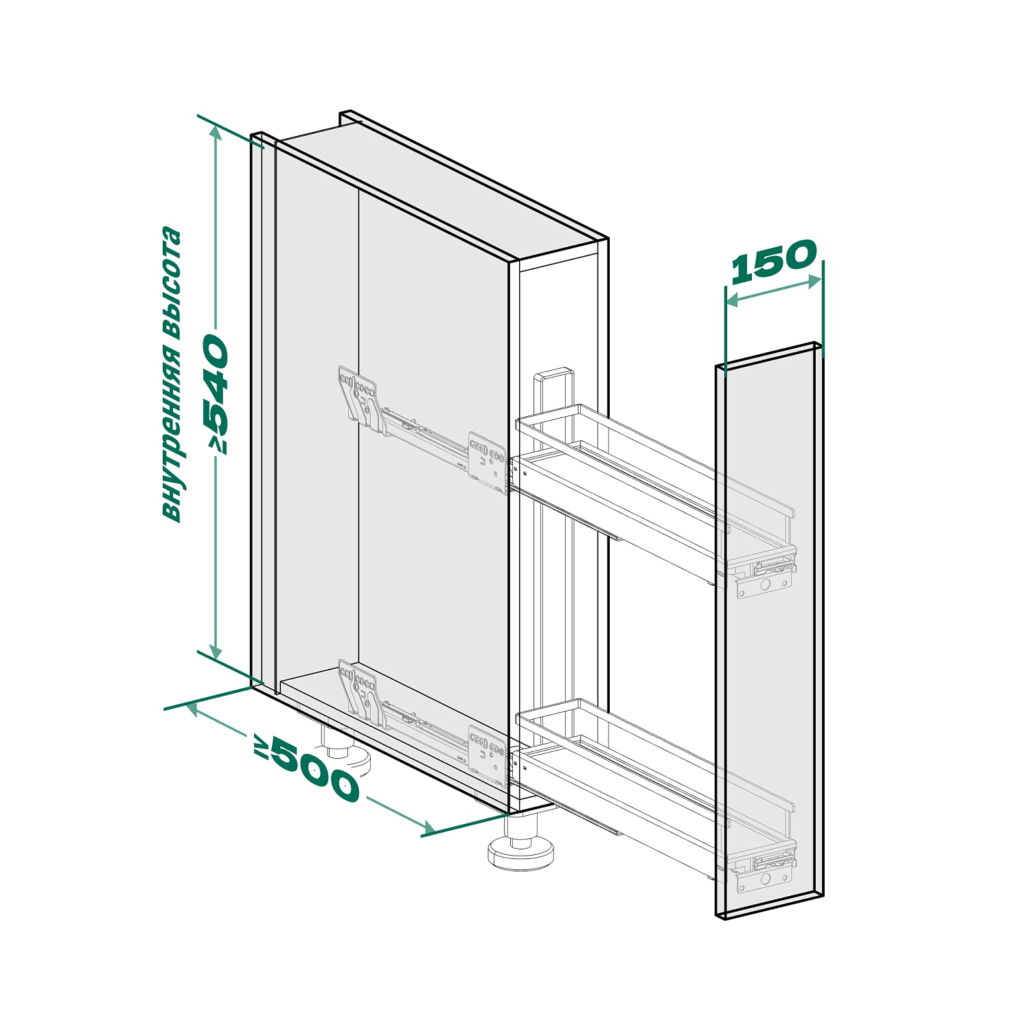 Бутылочница №15 с 2 полками H 542 фасад 150 мм 3D