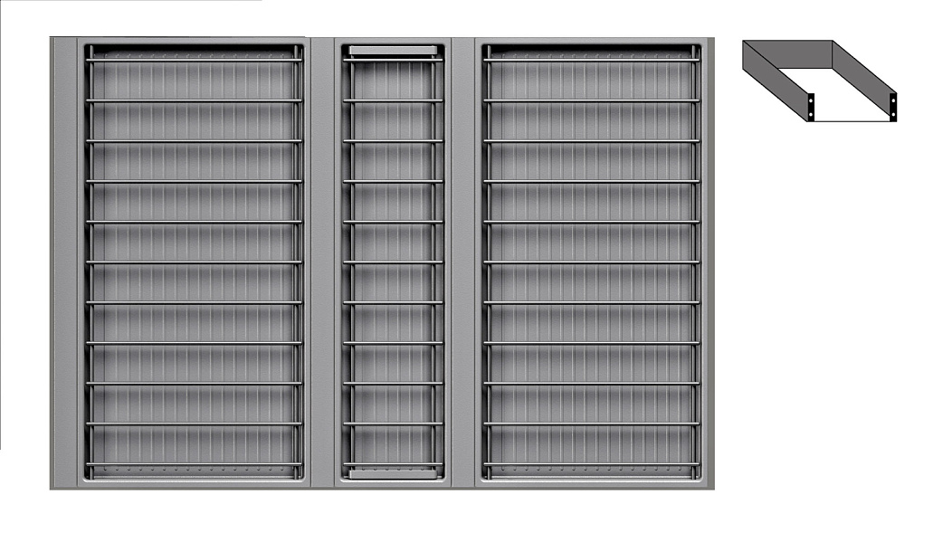 1 модуль с решеткой малый (423 х 124 мм, состоит из 1 х решетка металлическая, 1 х поддон пластиковый)