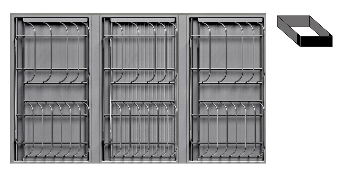 3 модуля для посуды большие (каждый модуль 423 x 248 мм, состоит из 1 х держатель металлический, 1 х поддон пластиковый, 2 х защелка-ограничитель)