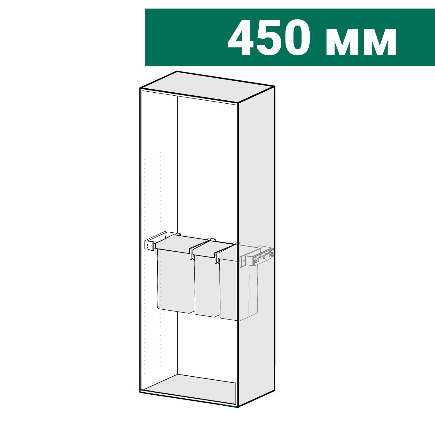 КОМПЛЕКТ Мешок для белья 450 мм Конеро W 860-920 мм, D 475 мм; мешок узкий 3 шт; шампань Kessebohmer