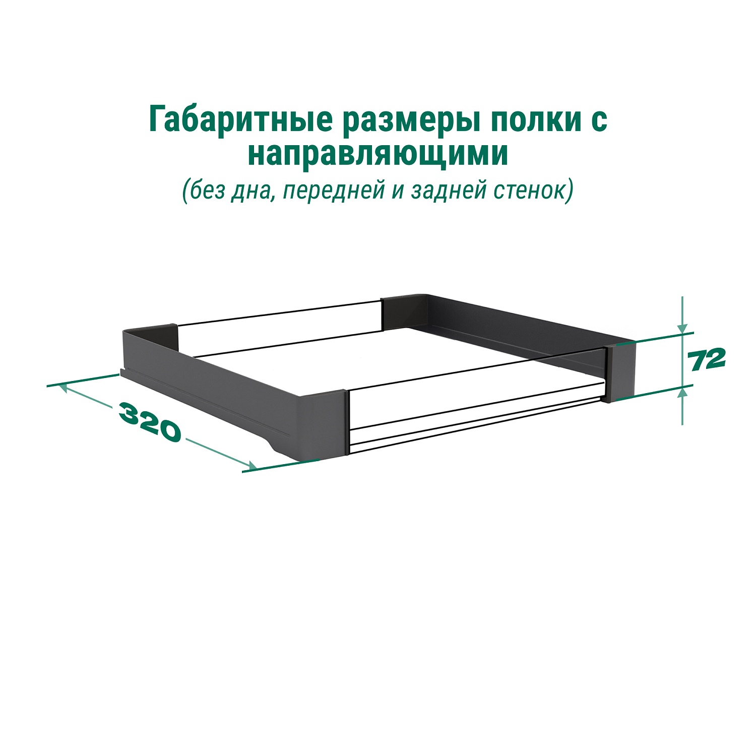 Полка внутренняя выдвижная 320 мм, Конеро, H 72, без дна, передней и задней стенок, 1 шт, цвет ЧЕРНЫЙ Kessebohmer | официальный магазин